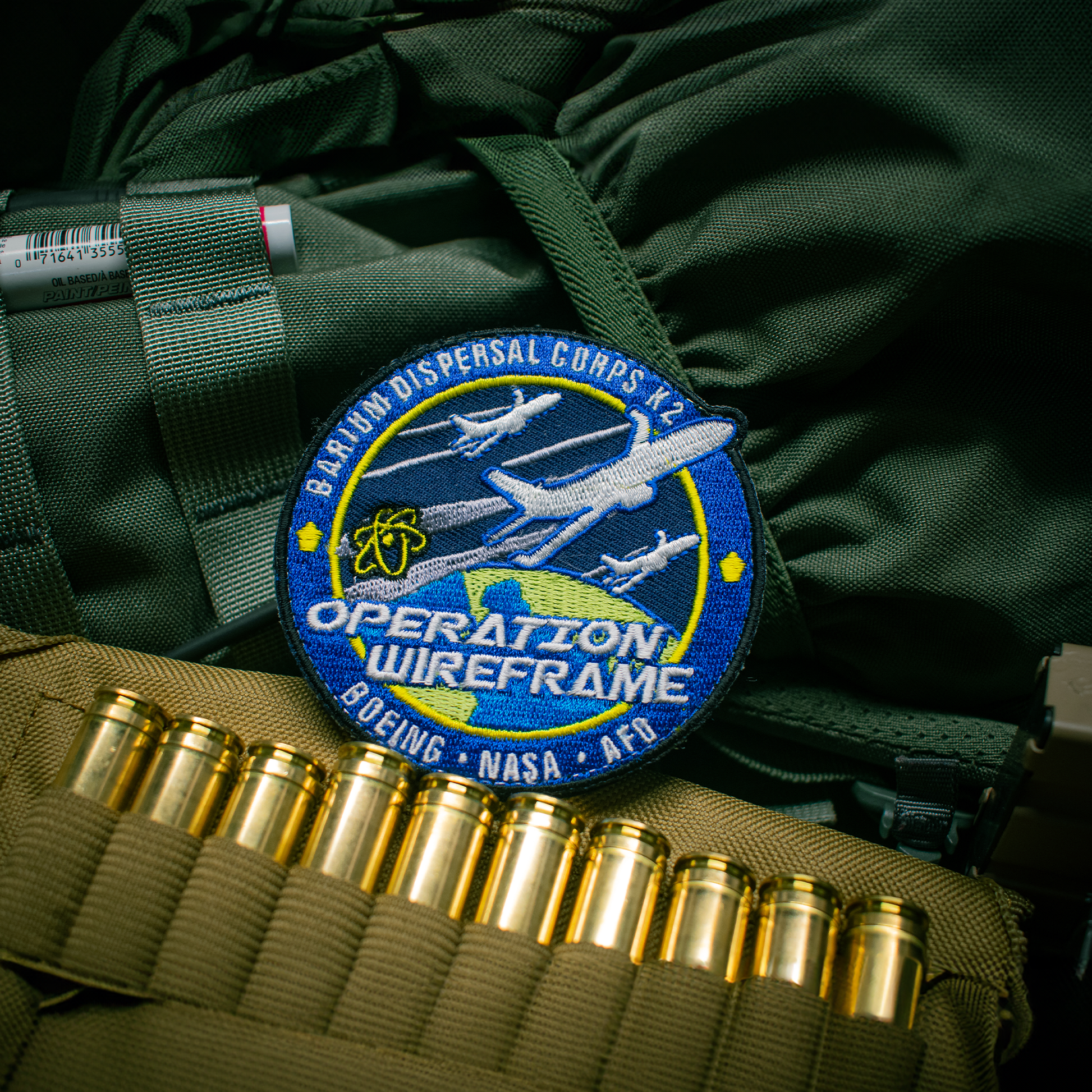 The official mission patch of the Northeastern Barium Dispersal Corps, K2. Responsible for testing and coordination of hundreds of substance dispersal flights over the continental United States.